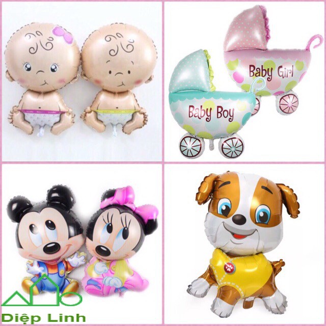 Giới thiệu Bóng lẻ tráng nhôm hình chó con, em bé , xe nôi , mickey size to đại