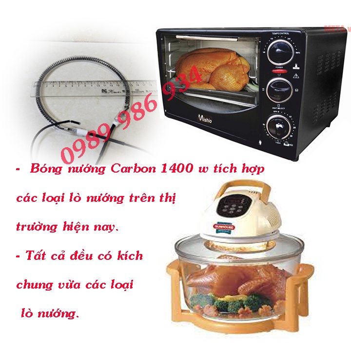- Bóng đèn Carbon 1400 w ( dạng vòng tròn ) dùng thay thế cho lò nướng thủy tinh ( nắp nướng thịt ) với nhiều model - nhiều hãng khác nhau - cùng kích cỡ , công suất là có thể thay thế sử dụng .