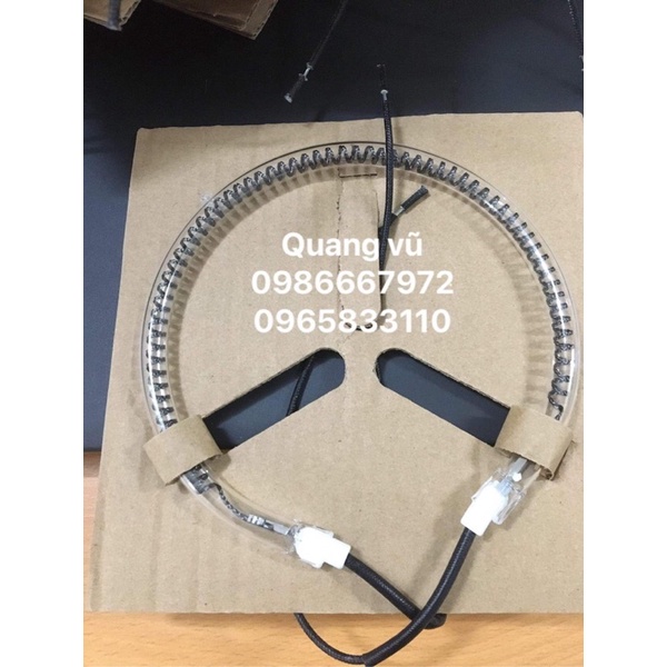 Bóng đèn sợi các bon ( dạng vòng tròn ) dùng thay thế cho lò nướng thủy tinh ( nắp nướng thịt ) với nhiều model - nhiều hãng khác nhau - cùng kích cỡ , công suất là có thể thay thế sử dụng .- Kích cỡ : 15 x 15 x 1 cm .