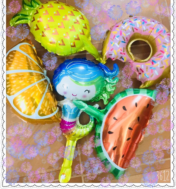 Bong nàng tiên cá, bánh dunex, dưa hấu, cam, dứaBong trang nhôm dầy đẹp