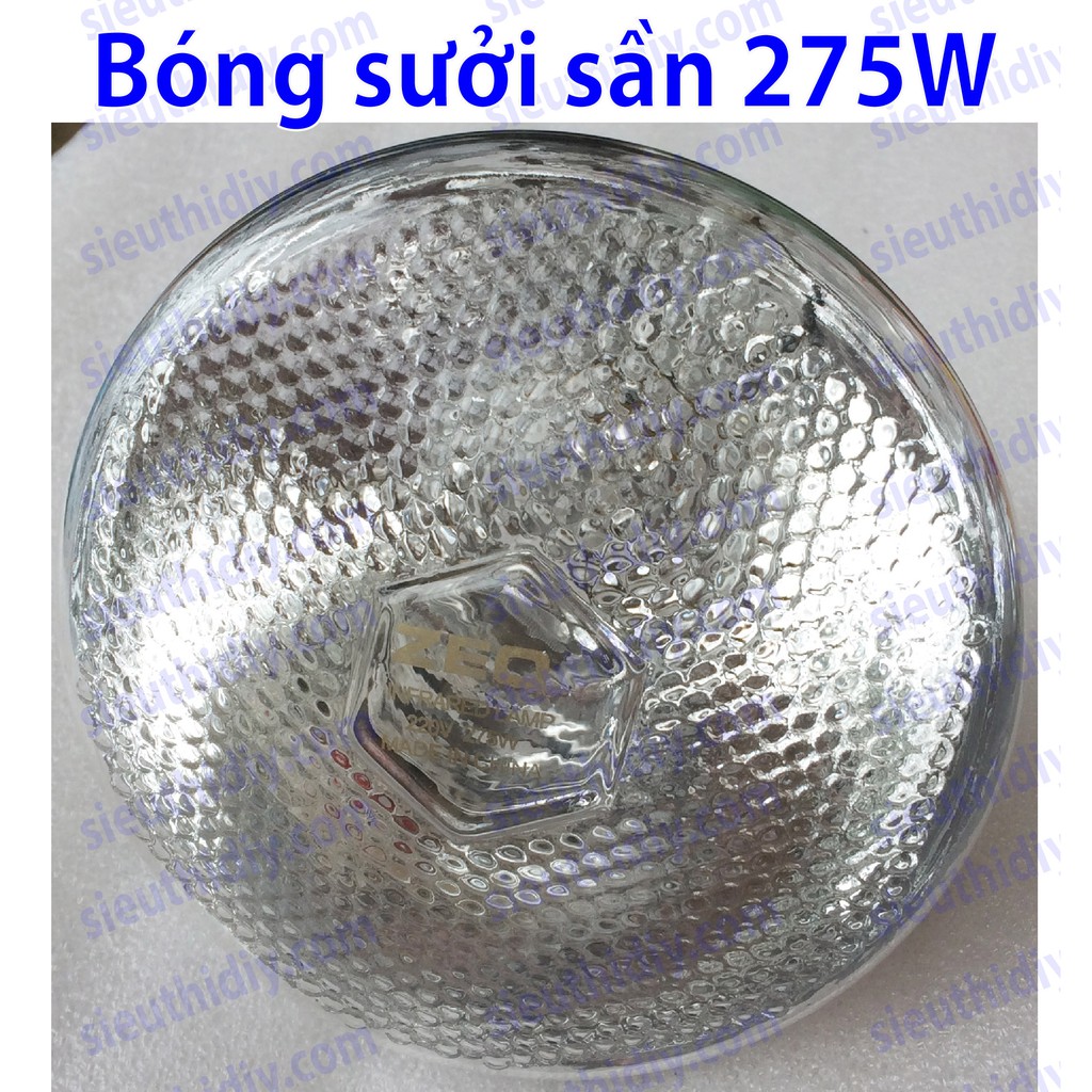 Bóng sưởi sần 275W giảm chói dùng cho nhà tắm, sưởi ấm:- Chức năng giống các loại bóng sưởi nhà tắm thông thường nhưng vỏ thủy tinh làm sần giảm chói (màu đỏ gần như không chói).