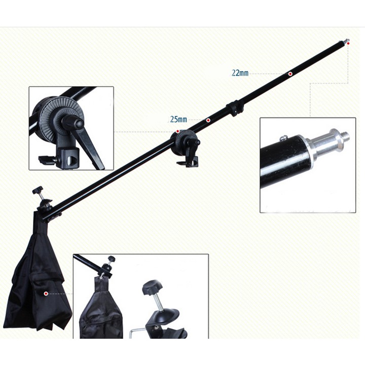 Tay boom đèn có túi vải đối trọng giúp cân bằng khi gắn đèn led, flash hoặc softbox đèn