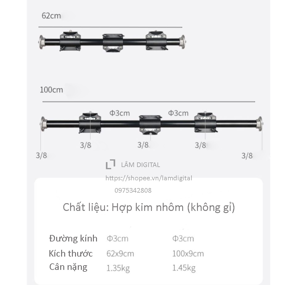 Tay boom treo máy ảnh cực khỏe. Tải trọng có thể lên 3-5 kg.-Kích thước chiều dài 62cm và 100 cm (tùy chọn)