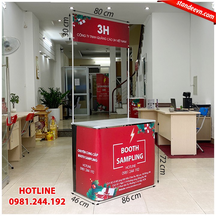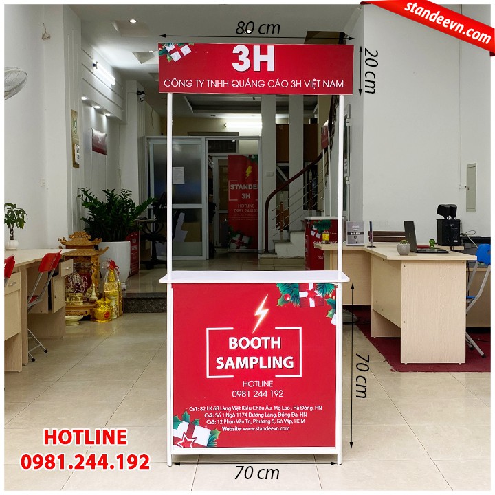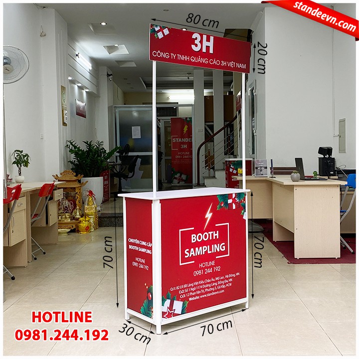Booth sampling di động, Quầy bán hàng di động chất liệu nhựa, nhôm, sắt | Nhà cung cấp booth sampling 3H