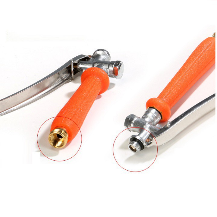 - Các đầu ren đều có gioăng cao sau chống rò rỉ nước. Tay bóp có khoá cài giúp cho không phải giữ tay bóp lâu khi tưới cây, tránh bị mỏi tay.