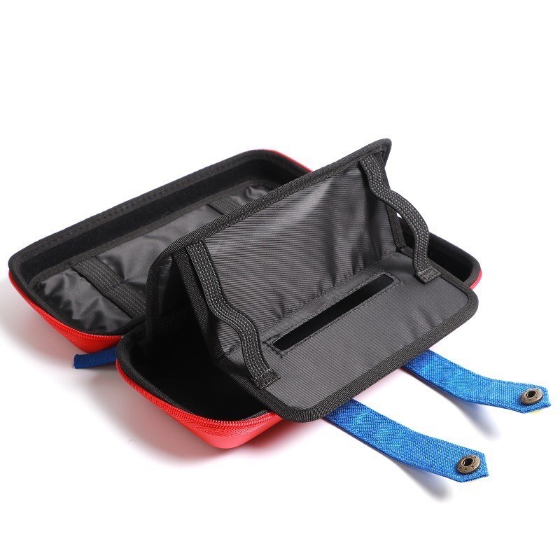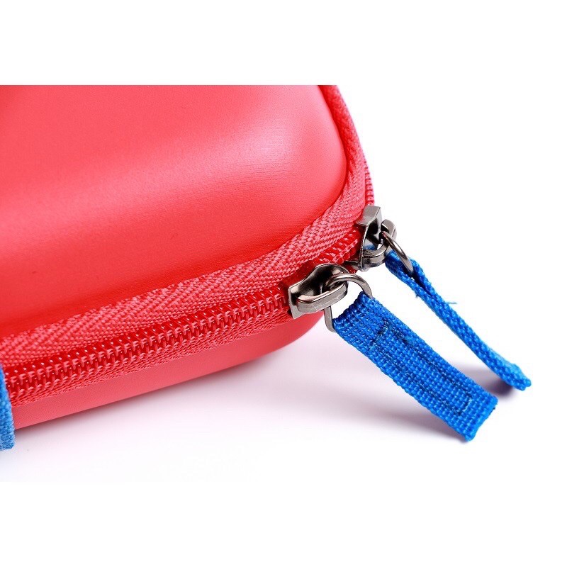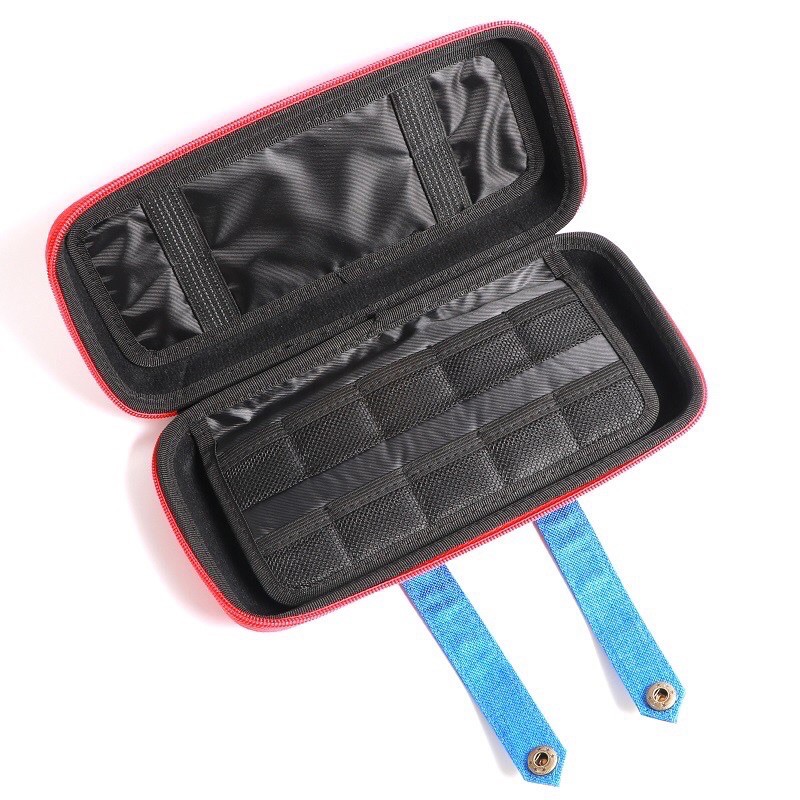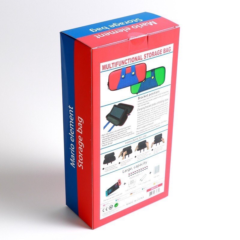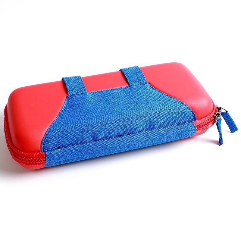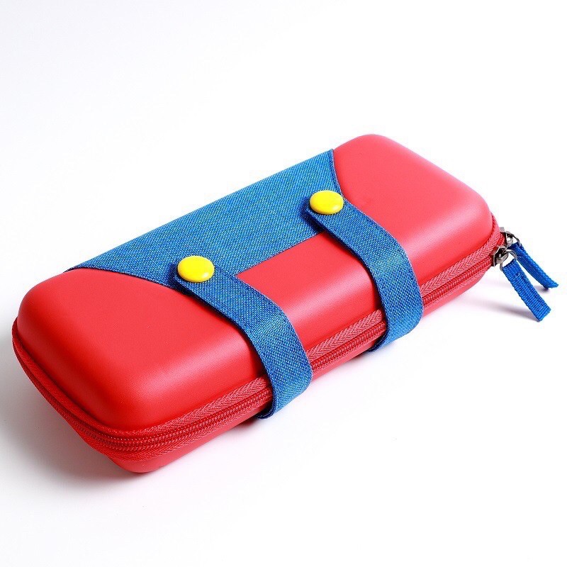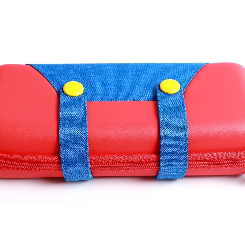 - Bóp cứng dùng để đựng máy Nintendo Switch lấy đề tài là trang phục của nhân vật Mario, có thể dựng phần lót bên trong làm đế dựng máy lên khi chơi với JoyCon rời