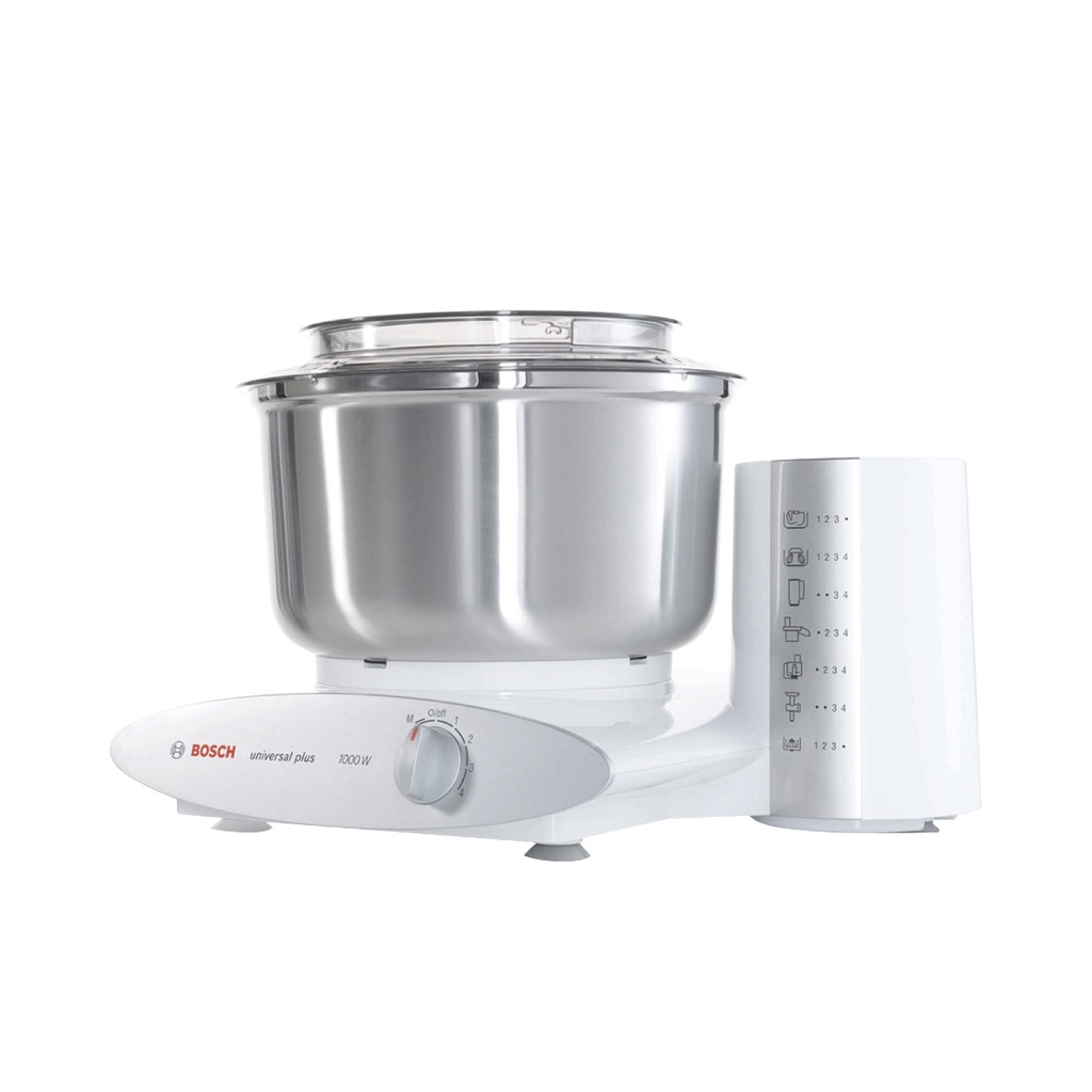 🍞Máy trộn đa năng Bosch Universal Plus MUM6N21 -1000W- tô trộn lớn 6,2lit, thỏa sức cho bạn sáng tạo những loại bánh thơm ngon hay quết giò để làm các loại chả để phục vụ cho cả nhà.🍞Công suất 1000W được trang bị bốn mức độ trộn và đánh từ thấp đến cao tuỳ theo nhu cầu sử dụng.