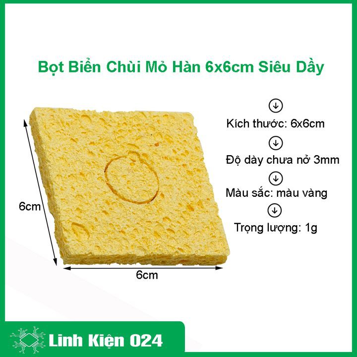 Giới thiệu Bọt biển chùi mỏ hàn 6x6 siêu dầy lau mũi hàn cực sạch