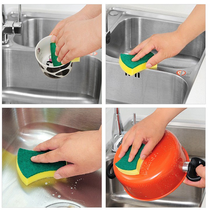 Miếng bọt biển rửa bát hình giúp công việc rửa chén nhanh chóng, hiệu quả hơn.– Chất liệu sợi Microfiber giúp lấy đi những vết bẩn cứng đầu nhanh gấp 4 lần so với miếng rửa chén thông thường, giảm lượng vi khuẩn cho đồ dùng của bạn.