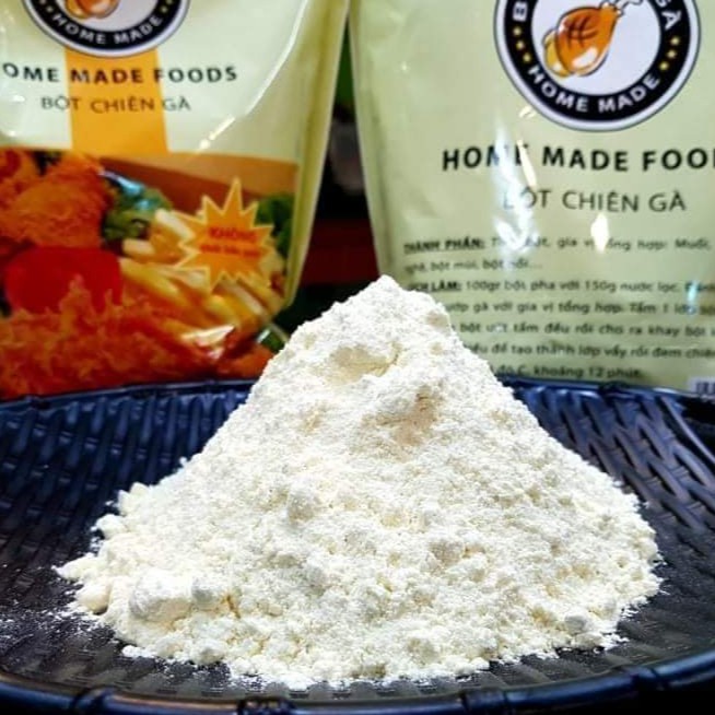 Thành phần : Bột mỳ, tinh bột ngô, muối, đường, bột bắp, bột nổi, bột ớt, bột tiêu đen, bột gừng, Dextrin, bột tỏi cô đặc, bột vỏ đậu khấu, bột nhục đậu khấu.
