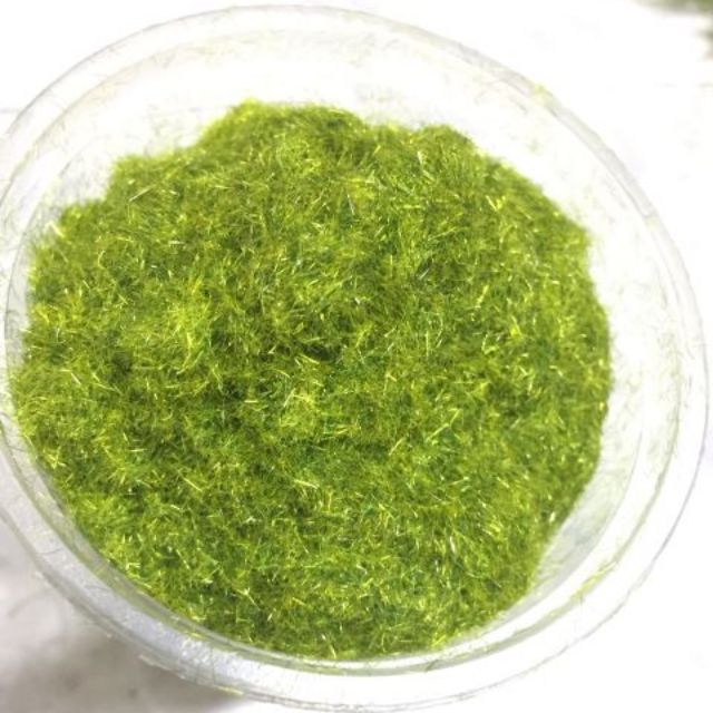 Bột cỏ nhungChất cỏ nhung rất mịn, ánh kim tuyến, màu xanh nhìn rất đẹp mắt