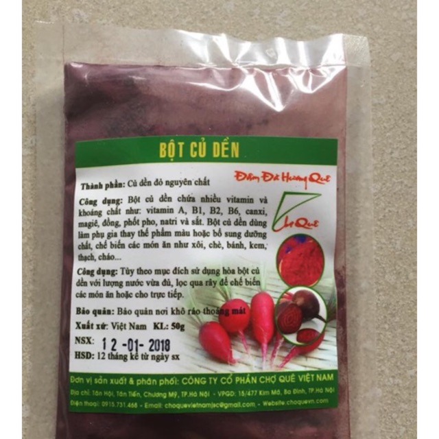 Bột củ dền gói 50g- Bột củ dền được làm từ củ dền đỏ nguyên chất 100% tự nhiên