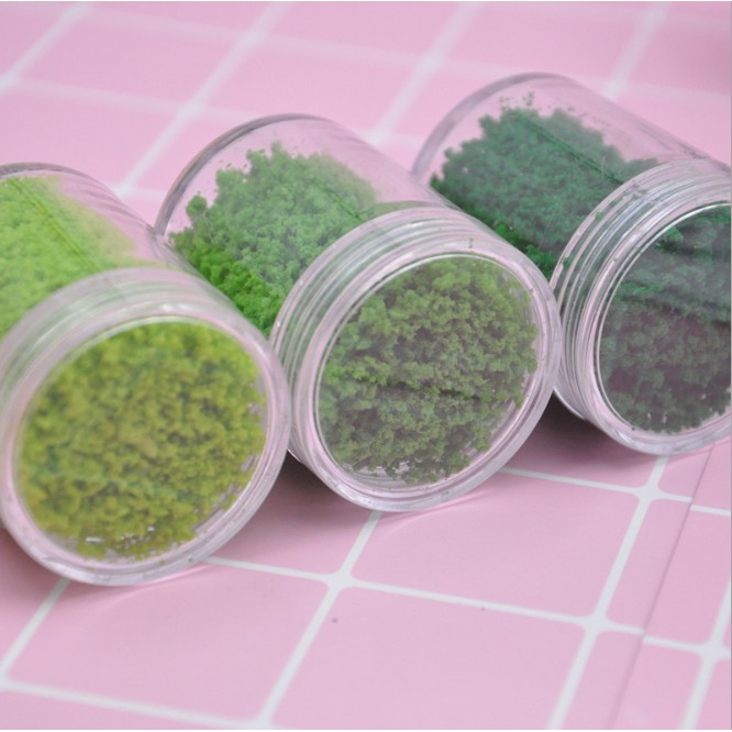 Bột nhựa vón bông mô phỏng lá cây xanh, rêu thích hợp làm phụ kiện trang trí cho tiểu cảnh, sa bàn thêm sống động.