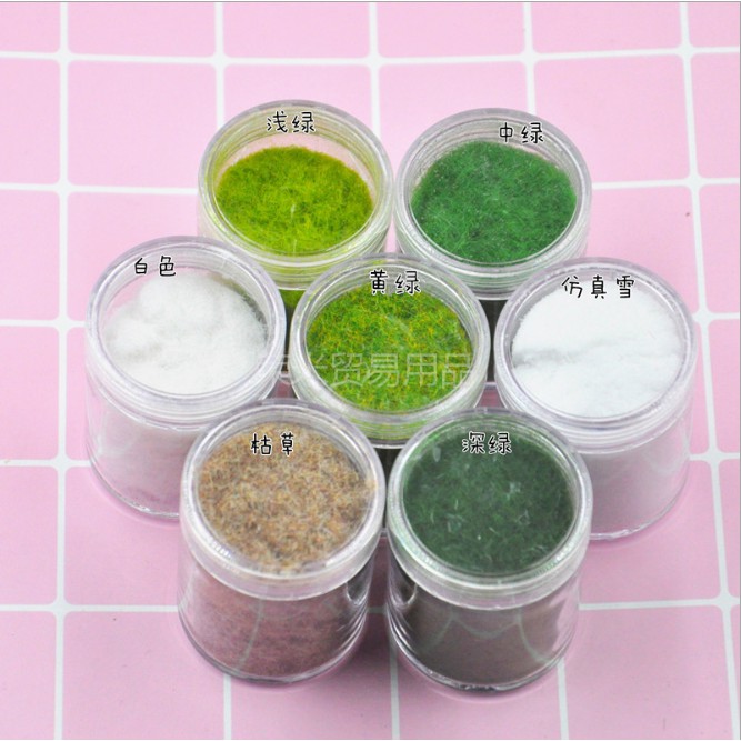 Bột sợi nhựa màu lọ 10gram mô phỏng tuyết trắng, màu cỏ cây xanh trang trí tiểu cảnh, sa bàn, DIY