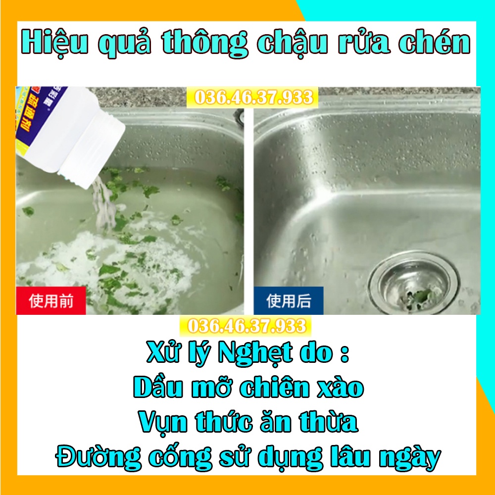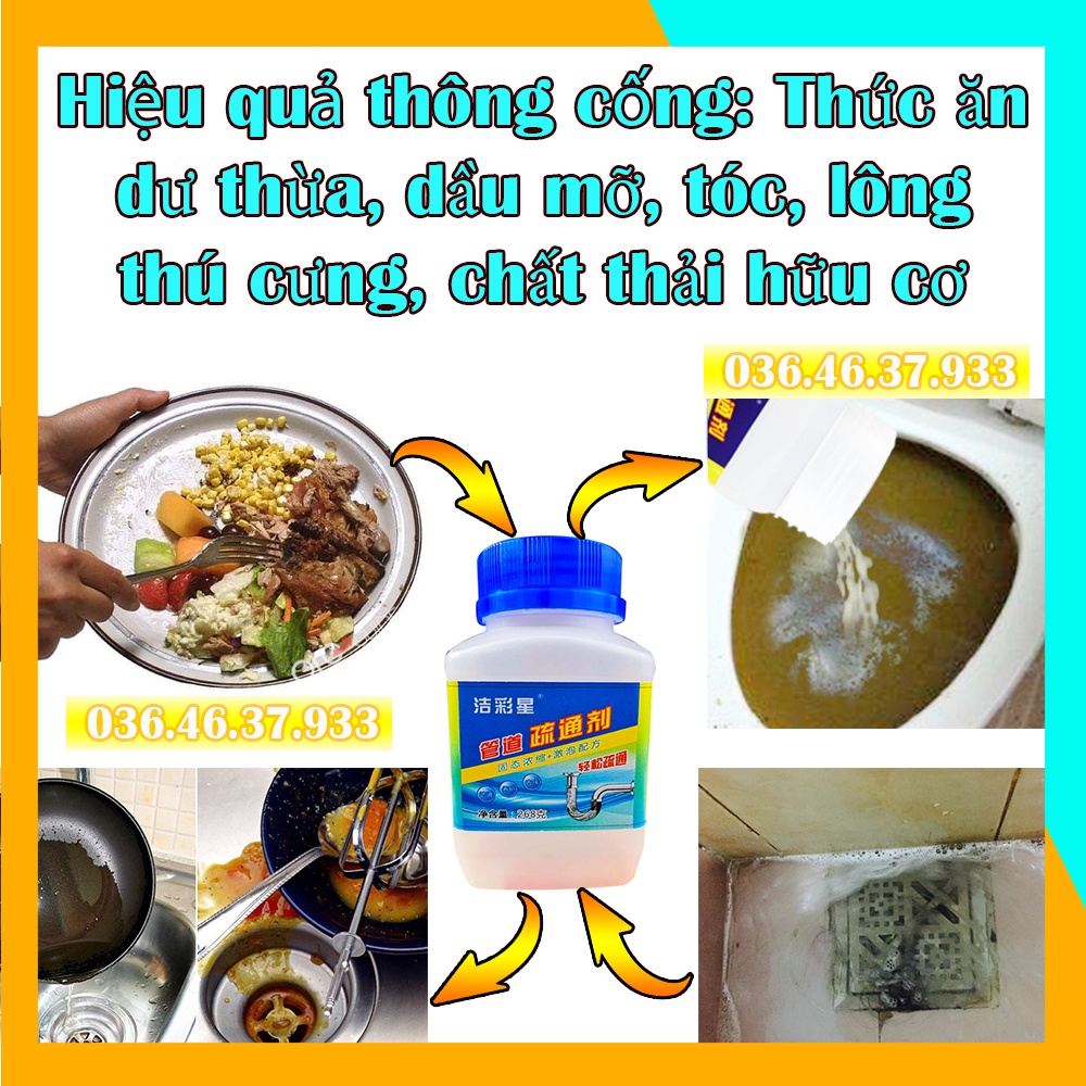 Bột thông cống bồn cầu cực mạnh chất phân hủy dầu mỡ bồn rửa chén An toàn cho đường ống