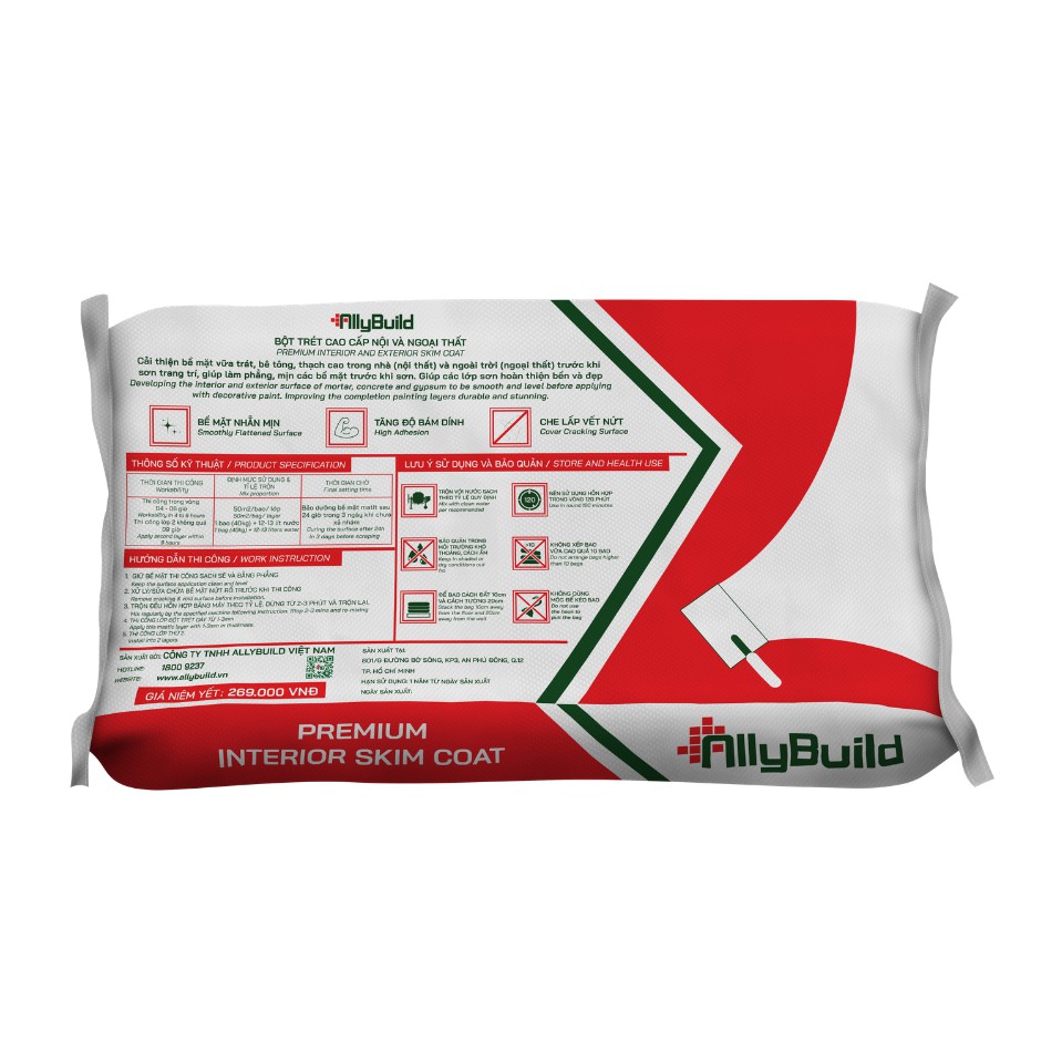 BỘT TRÉT TƯỜNG NỘI THẤT - ABBTT002Bột trét tường nội thất chống thấm AllyBuild được sản xuất tại Việt Nam.