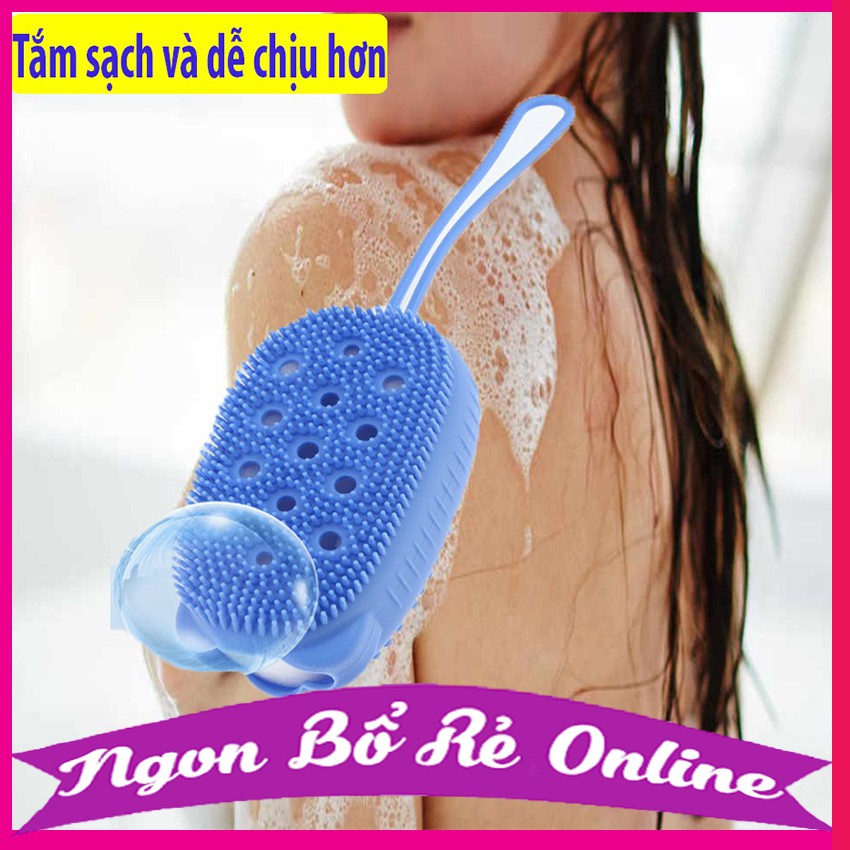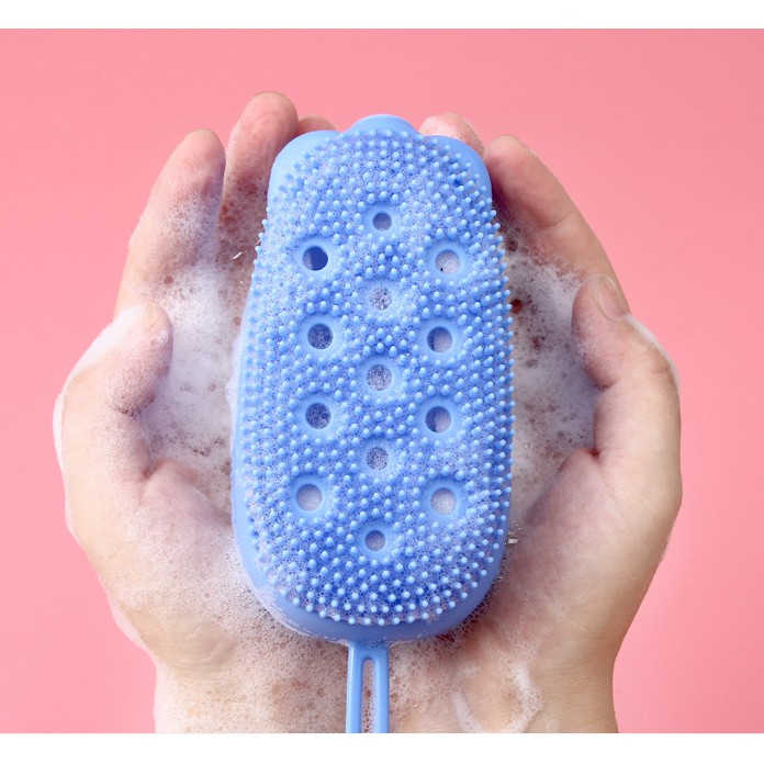 Bông tắm silicon 2 mặt, 1 mặt tẩy da chết Massage body, 1 mặt tạo bọt.