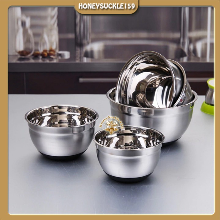 Bowl trộn bột đế silicon / Âu trộn bột / Tô trộn bột (Âu dày + sâu)Chất liệu: inox