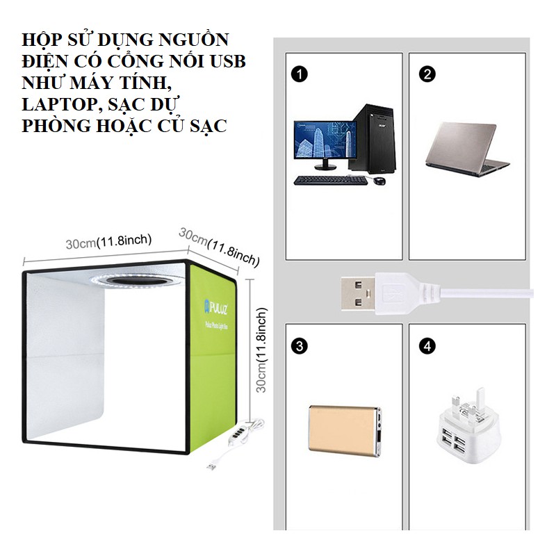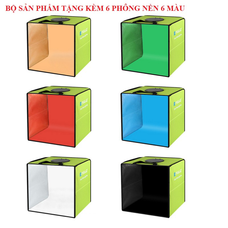 Hộp chụp sản phẩm kích thước 30x30cm có đèn led tặng kèm 6 phông nền màu sản phẩm hãng PuluzThông tin sản phẩm :