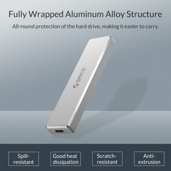 Giới thiệu sản phẩm Box chuyển M.2 PCie sang USB 3.1 ORICO PVM2-C3 – Biến SSD M.2 NVMe thành ổ cứng di độngBox SSD M2 NVME ORICO PVM2-C3, USB 3.0 và USB type C, Nhôm bạc. Hỗ trợ ổ 2TB