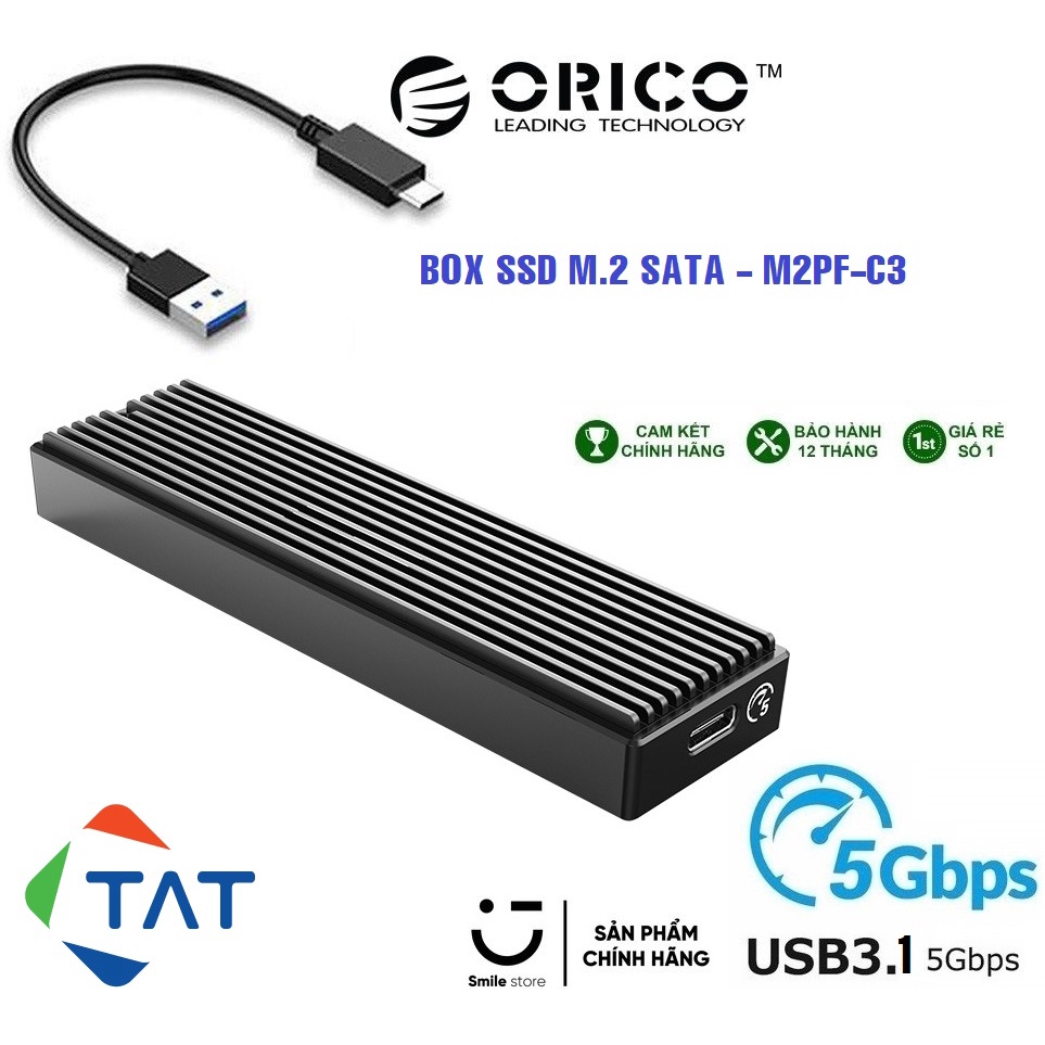 Máy tính & Laptop > Thiết Bị Lưu Trữ > Thiết Bị Đựng Ổ Cứng || Box di động SSD M.2 NGFF SATA Chuẩn USB 3.1 Gen1 Orico M2PF-C3-BKCòn hàng