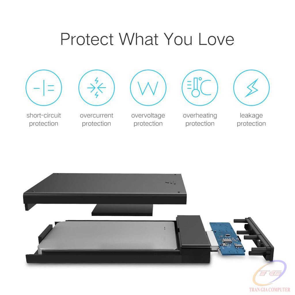 Được thiết kế đặc biệt tương thích cho ổ cứng 2.5 inch và SSD tối đa 6TB trong độ dày 7mm và 9.5mm.