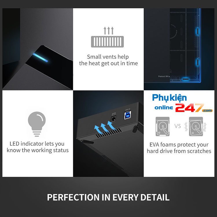 💥 Tốc độ kết nối dữ liệu nhanh với chuẩn Sata 3 và USB 3.0. Cung cấp tốc độ đọc và ghi dữ liệu lên tới 6Gbps.