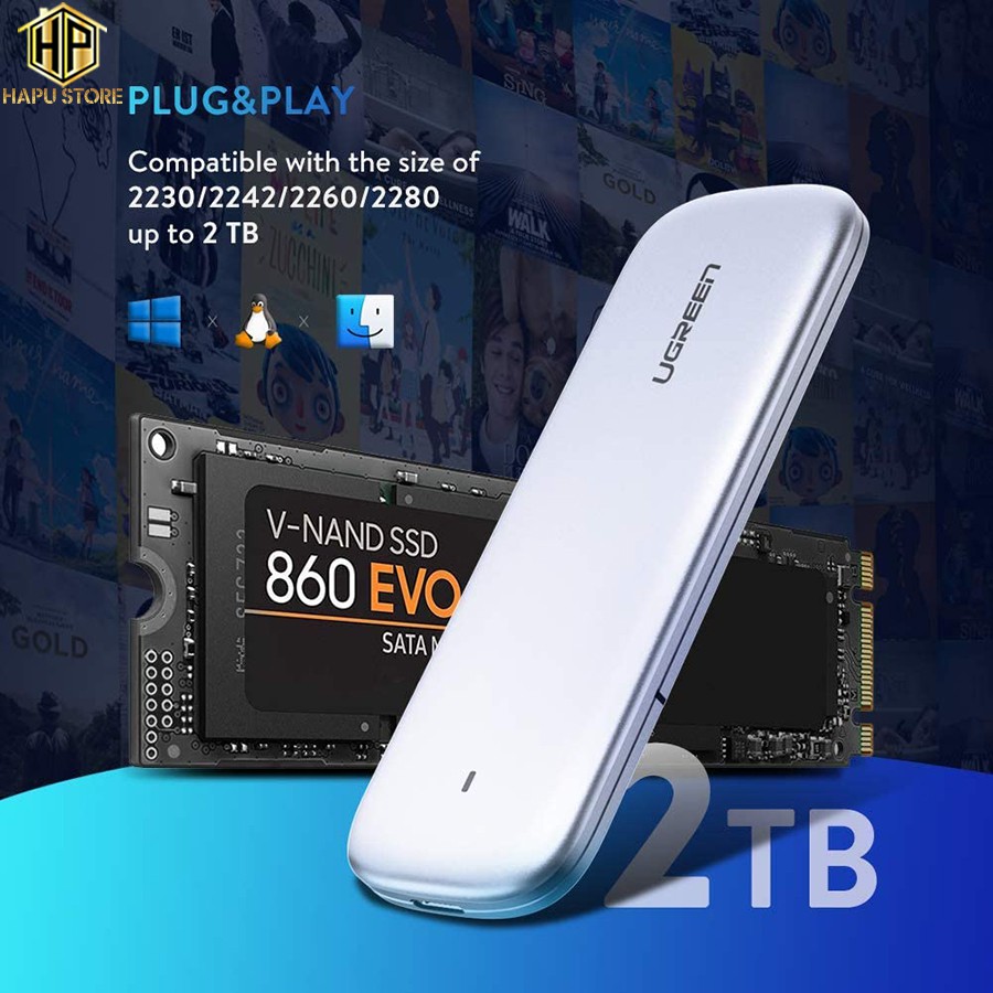 Máy tính & Laptop > Thiết Bị Lưu Trữ > Thiết Bị Đựng Ổ Cứng || [Mã 253ELSALE hoàn 7% đơn 300K] Box đựng ổ cứng SSD M.2 Sata NGFF chuẩn USB 3.0 Ugreen 60530 chính hãng - HapustoreCòn hàng