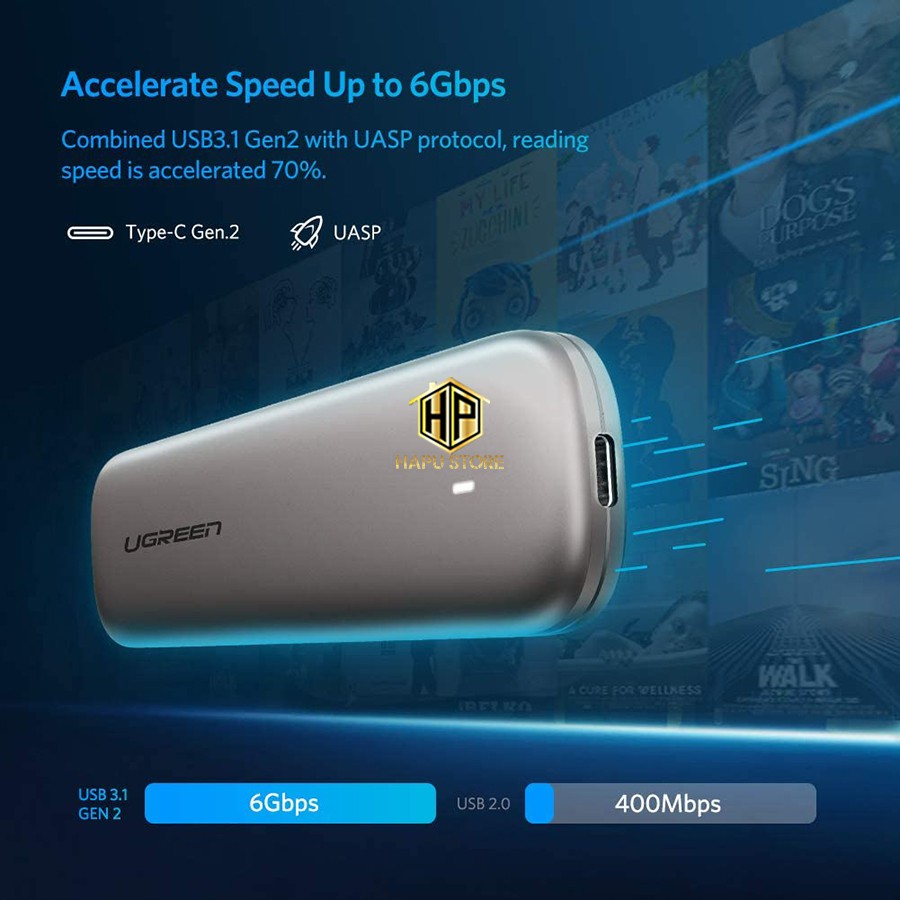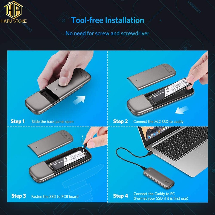 Box đựng ổ cứng SSD M.2 Sata NGFF chuẩn USB 3.0 Ugreen 60355 chính hãng - Hapustore