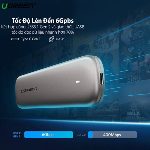 - Box đựng ổ cứng SSD M.2 Sata NGFF chuẩn kết nối USB 3.0 Ugreen 60355 box được thiết kế đặc biệt cho SSD M.2 dựa trên chân cắm B-Key & M+B Key Sata NGFF bao gồm các kích thước 2280/ 2260/ 2242/ 2230 hỗ trợ dung lượng ổ lên đến 2Tb. Kết nối ổ cứng SSD M.2 với máy tính dễ dàng để trao đổi dữ liệu ổn định hơn và nhanh hơn. Dễ dàng biến SSD M.2 thành ổ cứng di động bên ngoài giúp tái sử dụng SSD M.2 cũ của bạn.