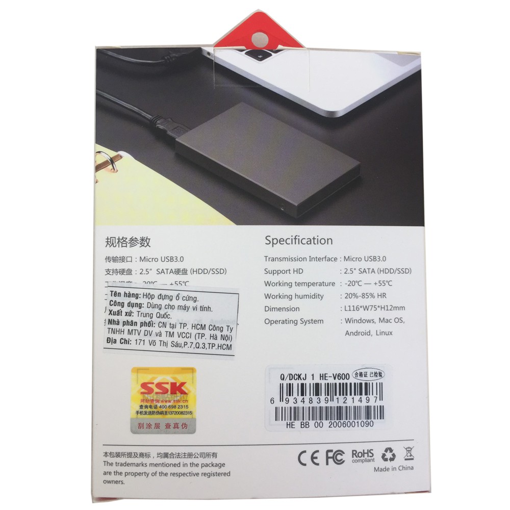 Máy tính & Laptop > Thiết Bị Lưu Trữ > Thiết Bị Đựng Ổ Cứng || Box HDD 2.5INCH SSK HE V600 Sata USB 3.0 5.0Gbps hỗ trợ ổ cứng lên đến 10TBCòn hàng