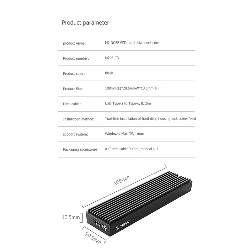 - Kích thước Box Orico siêu nhỏ gọn: 108mm x 29,5mm x 13,5mm