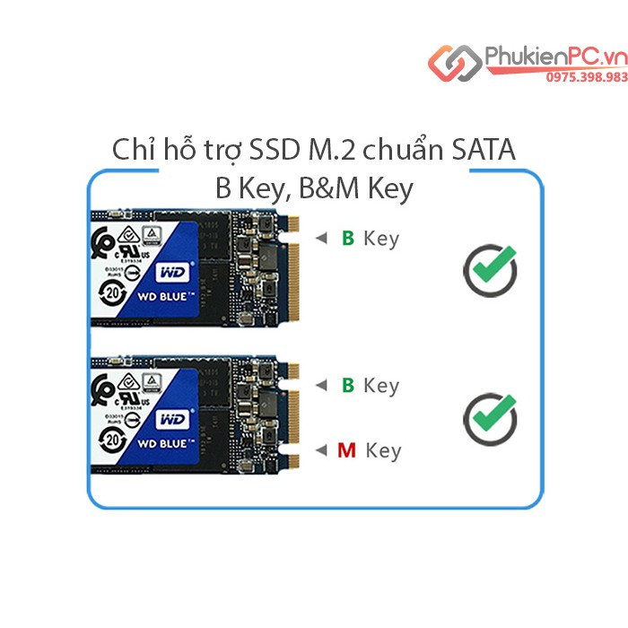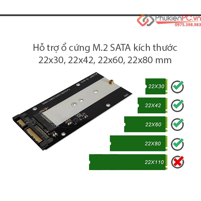 - Hỗ trợ tất cả các loại SSD M.2 NGFF chuẩn SATA kích thước 22x30, 22x42, 22x60, 22x80 mm