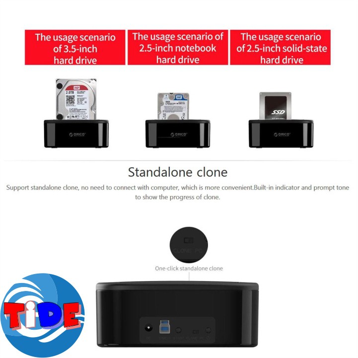 - Giao diện SATA có thể giúp HDD Dock Orico 2.5/3.5 inch USB3.0 Dual-bay 6228US3 hoạt động tốt bất chấp các loại HDD gay SDD khác nhau, thật tuyệt vời cho người sử dụng.