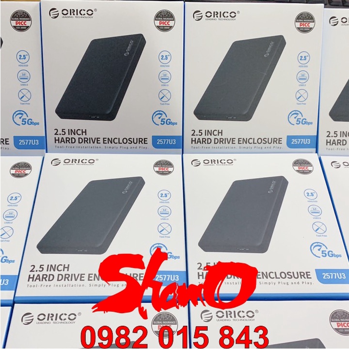 Box ổ cứng 2.5” Orico 2577U3 – Màu đen – Chính hãng – Dùng cho SSD và HDD size 2.5 inch – Bảo hành 12 tháng