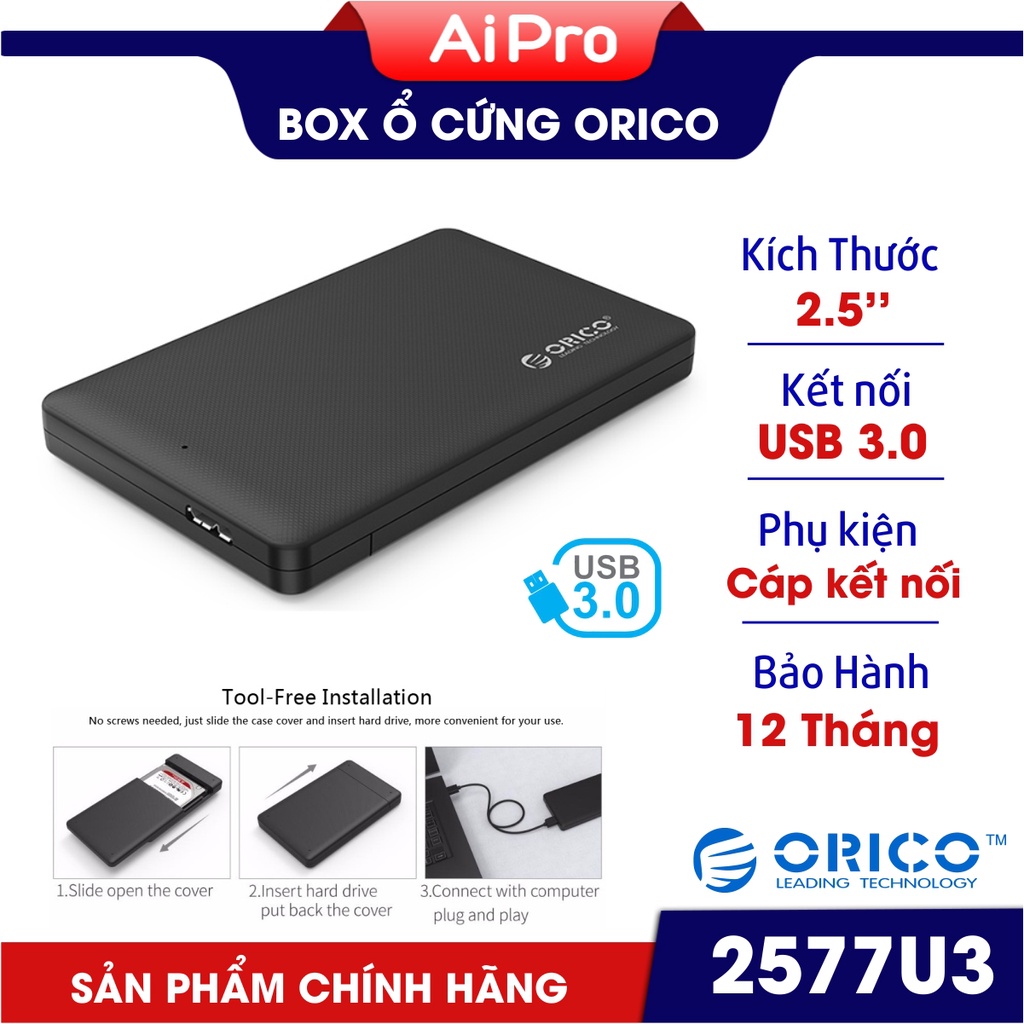 Máy tính & Laptop > Thiết Bị Lưu Trữ > Thiết Bị Đựng Ổ Cứng || Box ổ cứng 2.5'' Orico 2577U3 - Chính Hãng - Sata III USB 3.0 - Bảo Hành 12 Tháng!!!Còn hàng