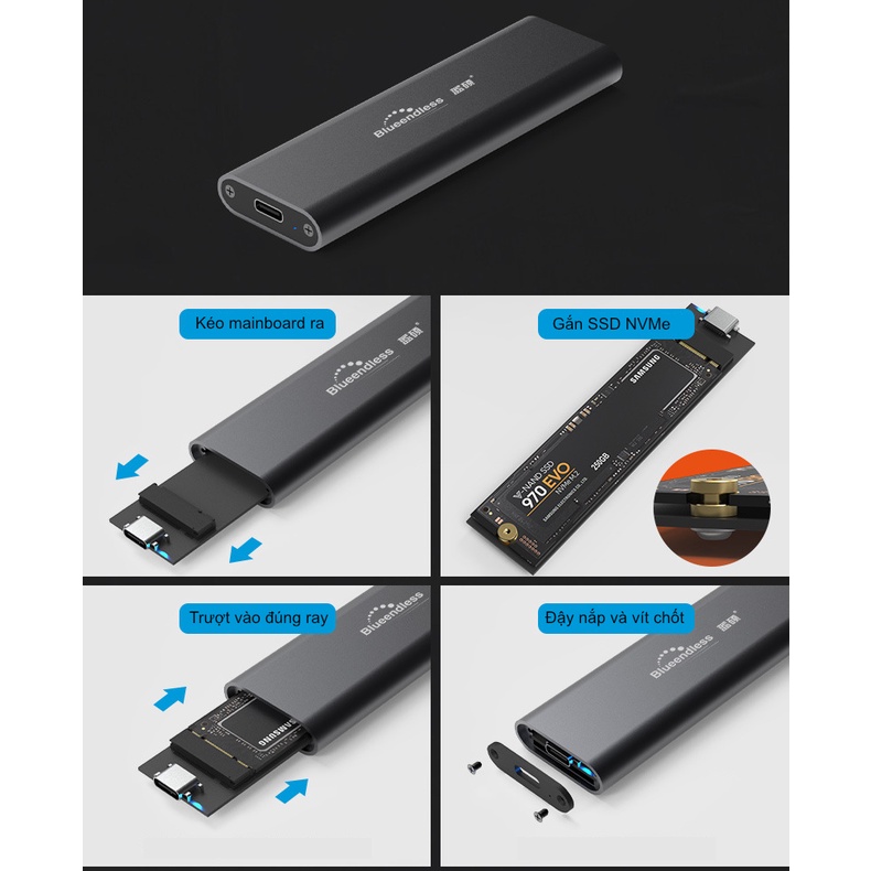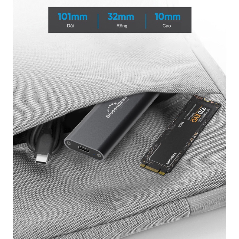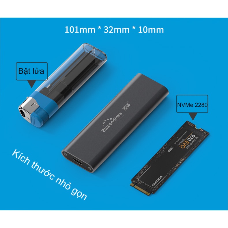 Box ổ cứng SSD NVMe M.2 chuẩn USB 3.2 gen 2 10Gbps tốc độ cao UASP - Blueendless (M.2 NVME 2280 SSD enclosure)