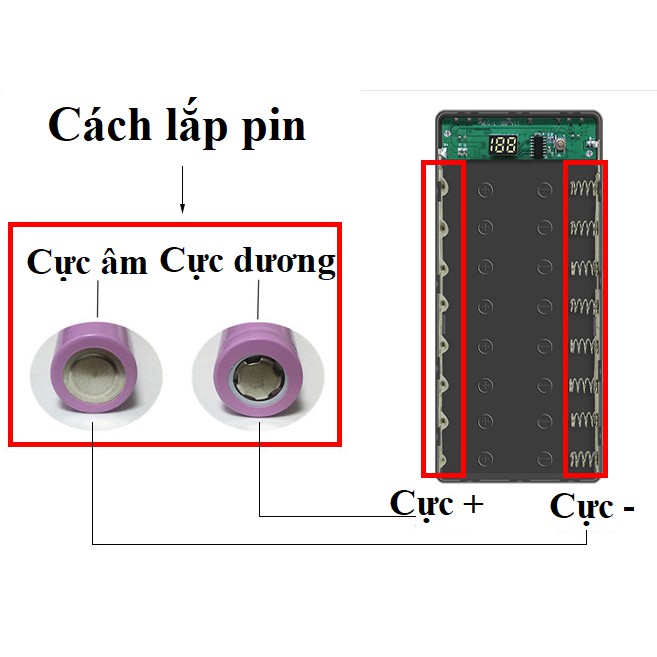 📌Lắp đúng pin 18650 và đúng chiều âm (-) dương (+)