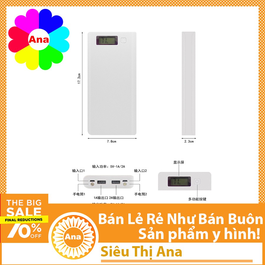 Sản phẩm bao gồm: 1 box sạc dự phòng 8cell hiển thị LCD KHÔNG pinThông số kỹ thuật:
