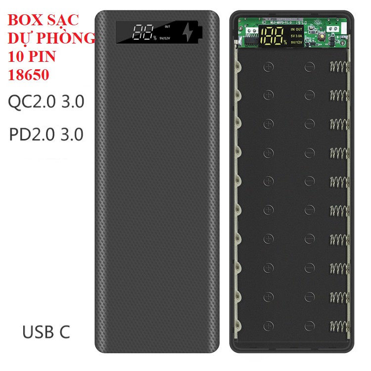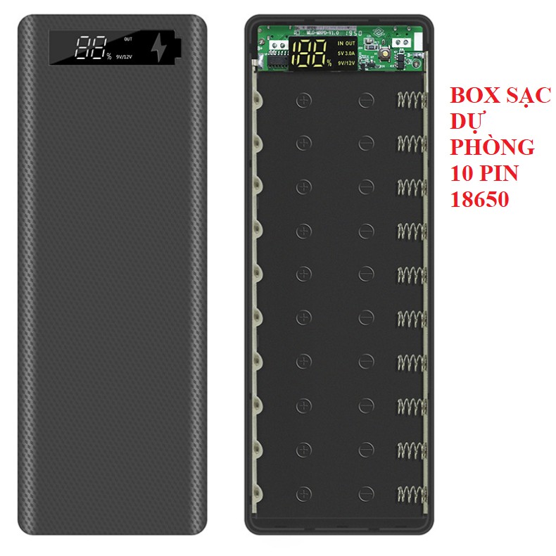 Box sạc dự phòng 10 pin 18650 cổng sạc nhanh QC3.0--------------------------------------------