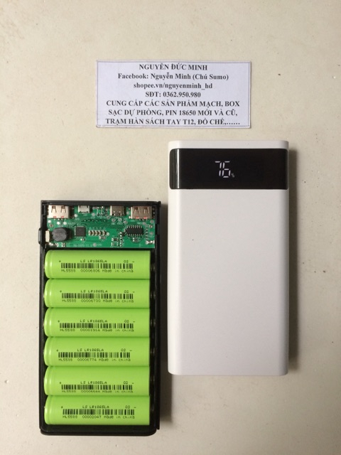 + box lắp được tối đa 6 cell pin 18650 quá trình sử dụng lên lựa chọn pin cùng hãng, pin mới, dung lượng, nội trở và xả pin tốt.