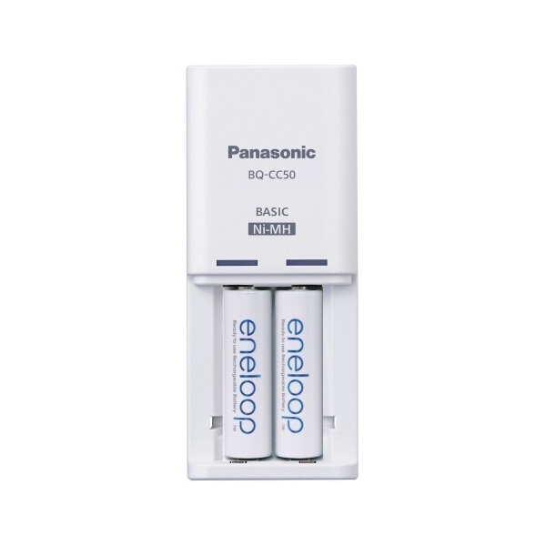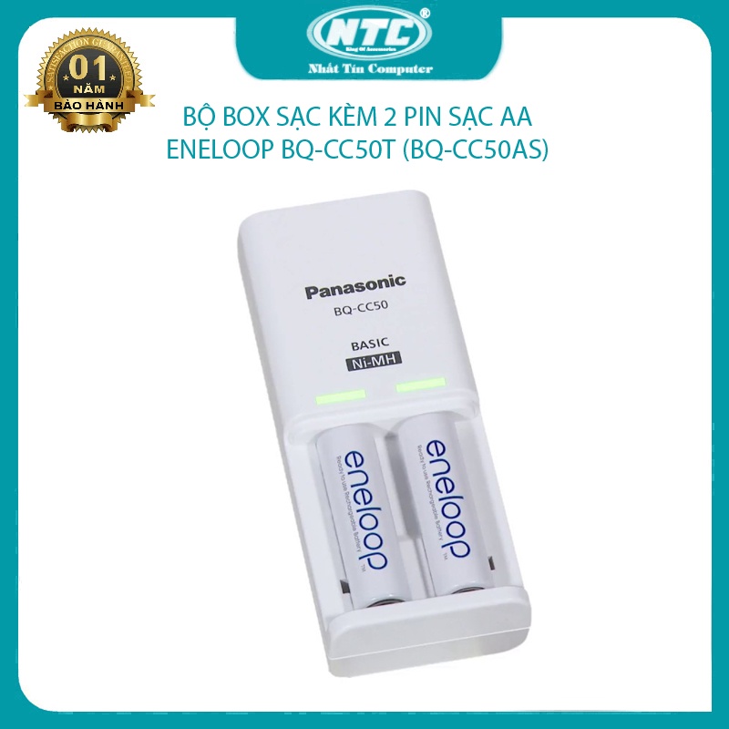 Bộ box sạc kèm 2 pin AA Eneloop 1900mah BQ-CC50T (BQ-CC50AS) chân gập tự ngắt sạc (trắng)