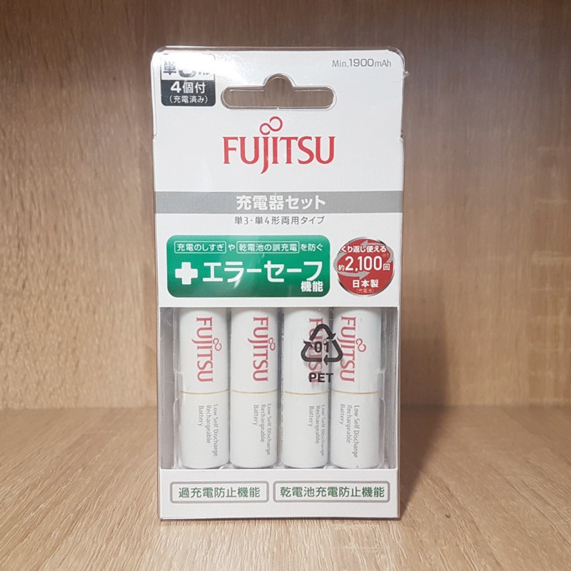 Bộ box sạc kèm 4 pin AA Fujitsu HR-3UTC 1900mAh hàng nội địa box Nhật - made in JAPAN (trắng)