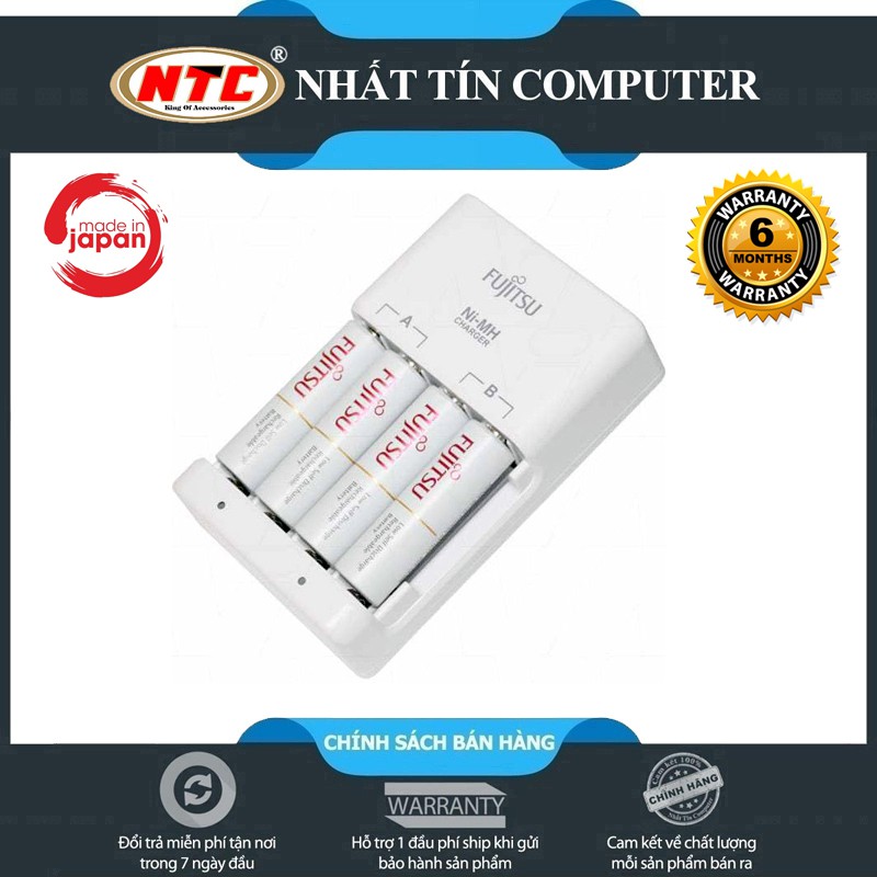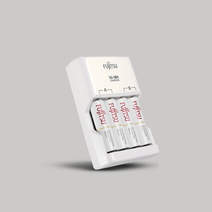 Cameras & Flycam > Phụ kiện máy ảnh > Bộ sạc pin || Bộ box sạc kèm 4 pin AA Fujitsu HR-3UTC 1900mAh hàng nội địa box Nhật - made in JAPAN (trắng)Còn hàng