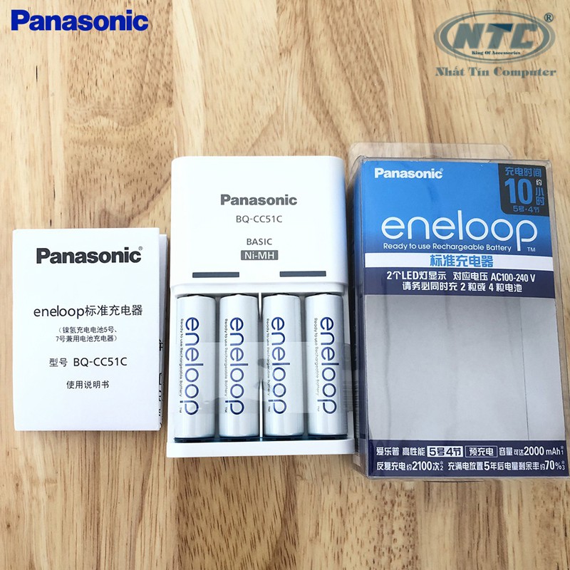 Bộ box sạc kèm 4 pin AA Panasonic Eneloop 1900mAh BQ-CC51C Basic (trắng)