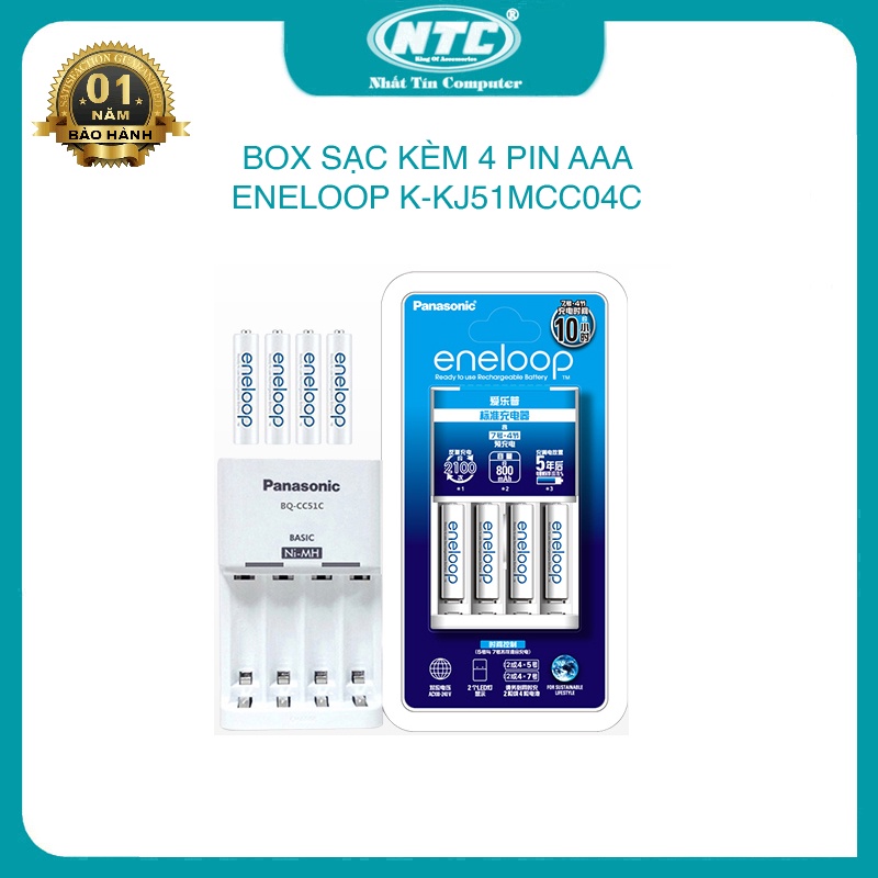 Bộ box sạc kèm 4 pin AAA Eneloop K-KJ51MCC04C (BQ-CC51C) - phiên bản nội địa (trắng) - Nhất Tín Computer