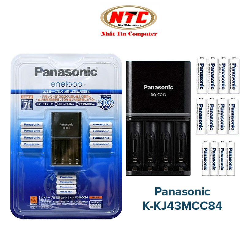 Cameras & Flycam > Phụ kiện máy ảnh > Bộ sạc pin || Bộ box sạc kèm 8 pin AA và 4 pin AAA Panasonic K-KJ43MCC84 - phiên bản nội địa made in Japan (Trắng)Còn hàng