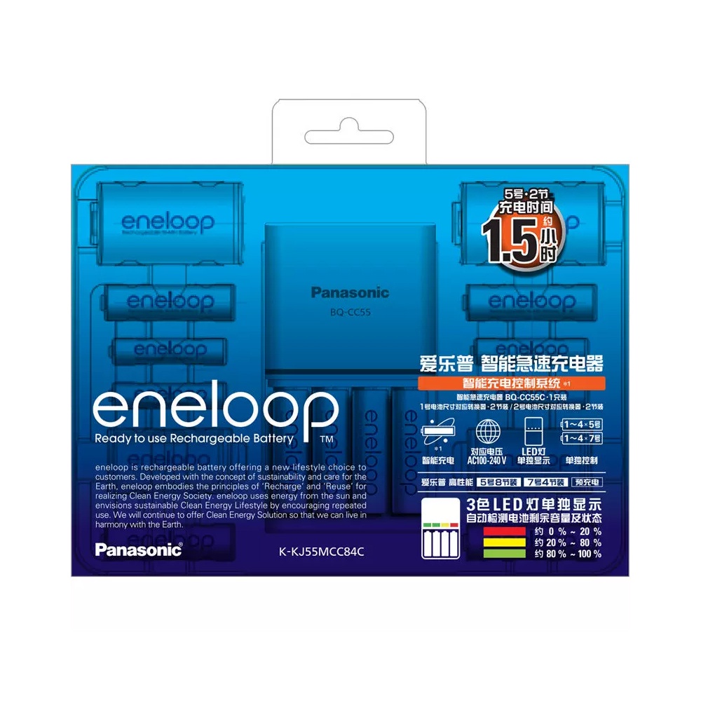 Bộ box sạc nhanh kèm pin Eneloop K-KJ55MCC84C (BQ-CC55C) gồm 8 pin AA/ 4 pin AAA/ 4 adapter AA to C và D (Trắng)