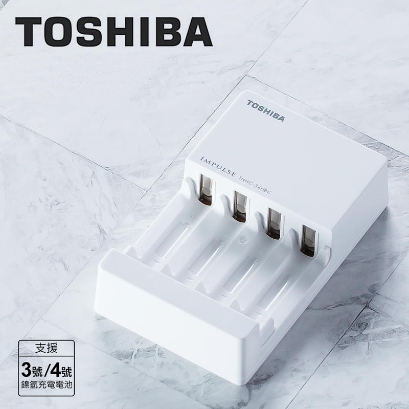 Box sạc nhanh TOSHIBA impulse TNHC-34HBC cho pin AA và AAA có 4 đèn led riêng biệt - phiên bản nội địa (trắng)