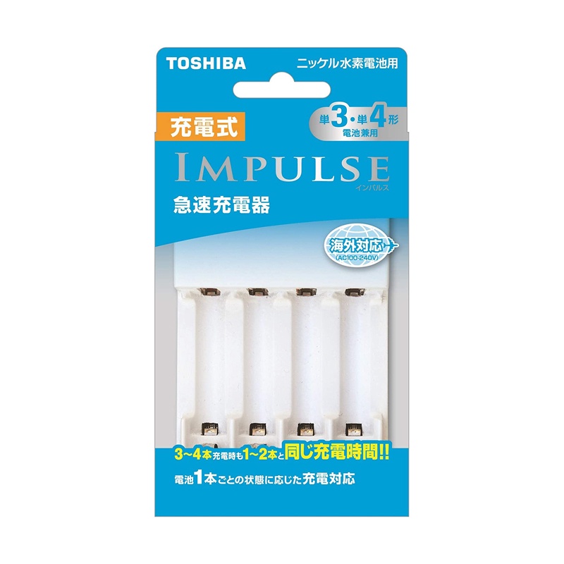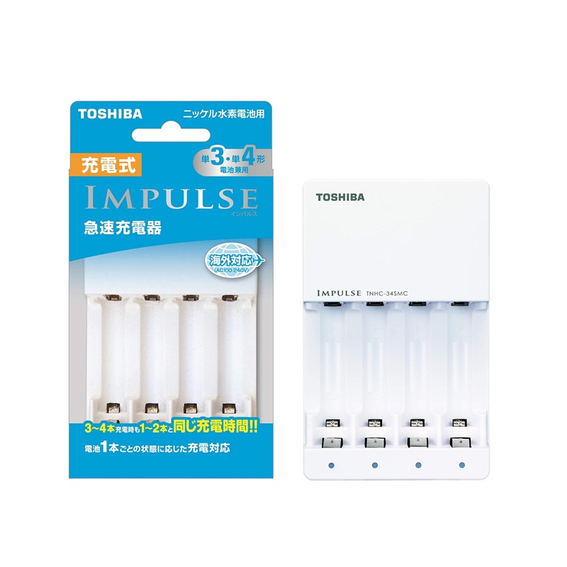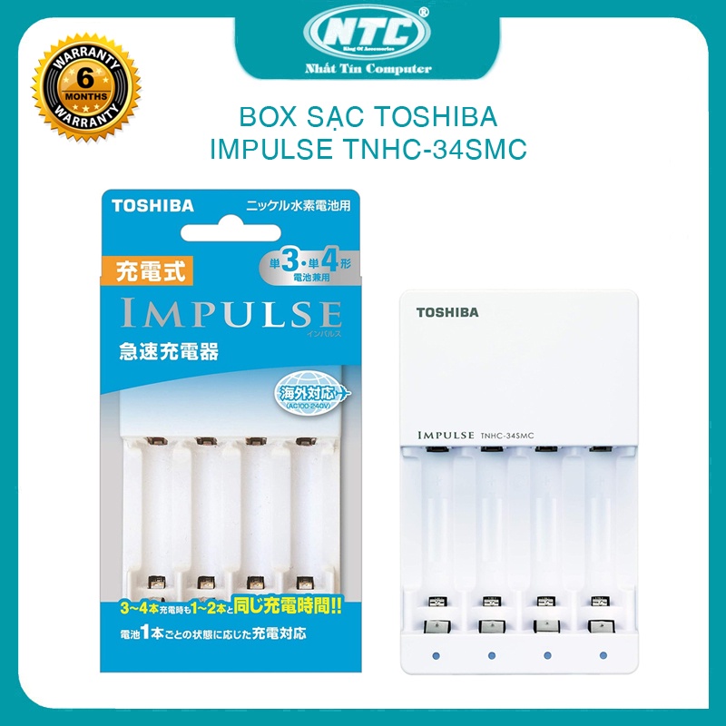 Thiết Bị Điện Gia Dụng > Pin || Box sạc TOSHIBA impulse TNHC-34SMC cho pin AA và AAA tích hợp 4 đèn led riêng biệt - dành cho thị trường nội địa (trắng)Còn hàng